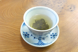 お湯呑に茶葉をティースプーンにかるく1杯を目安にそのまま入れて90℃以上のお湯を注ぎます。