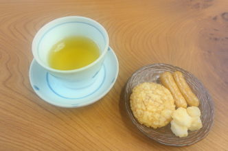 濃い目に淹れたりぐり山茶でおかきを楽しむ。やっぱり日本人ですもの。 |