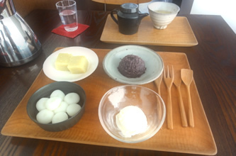 もっちりの白玉にこしあん、アイスクリームに芋羊羹。 |