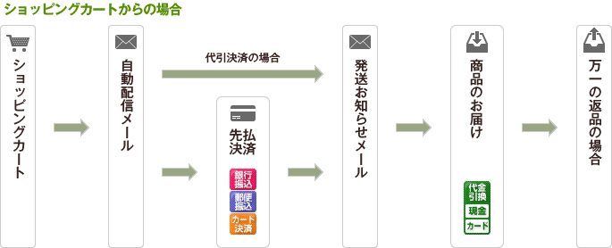 ご注文手続きが終了すると、ご注文時に入力いただいたメールアドレスに「自動配信メール」をお送り致します。「自動配信メール」にご注文内容を記述してありますのでご確認ください。